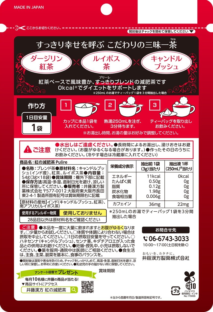 [12個]井藤漢方製薬 紅の減肥茶 pulire 54g(3g×18袋) | すっきり幸せを呼ぶ、3種類の素材を配合した紅茶ベースの減肥茶
