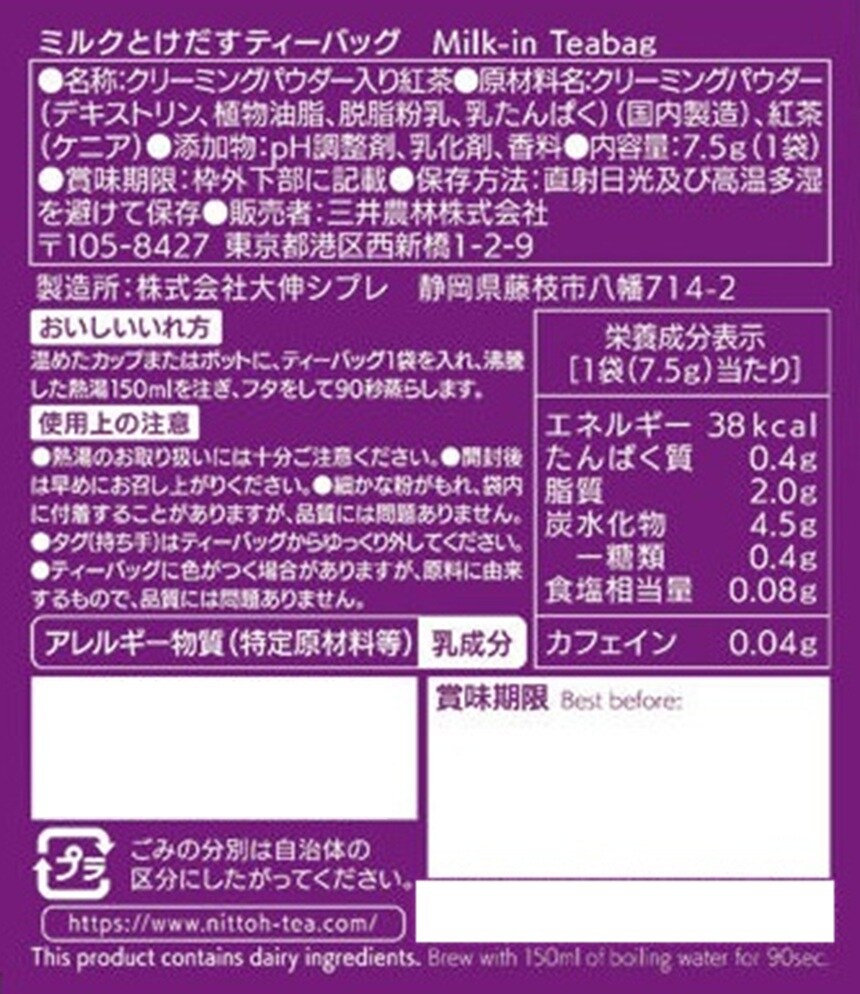 - 日東紅茶 ミルクとけだすティーバッグ アールグレイ 1p