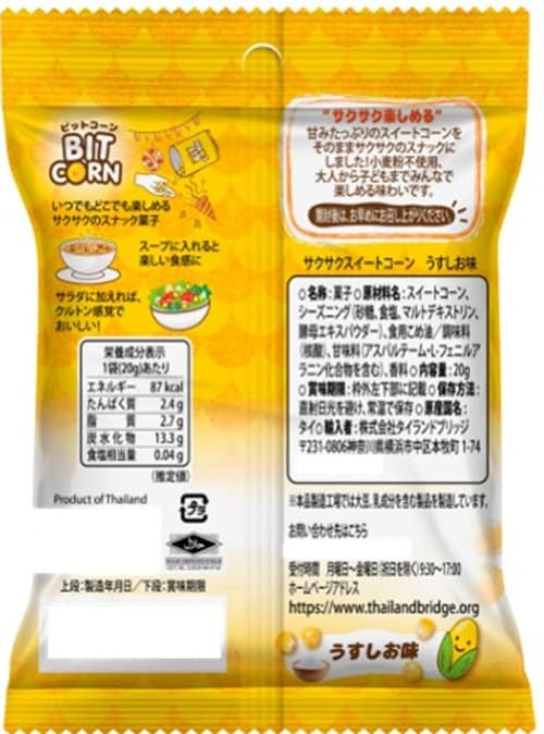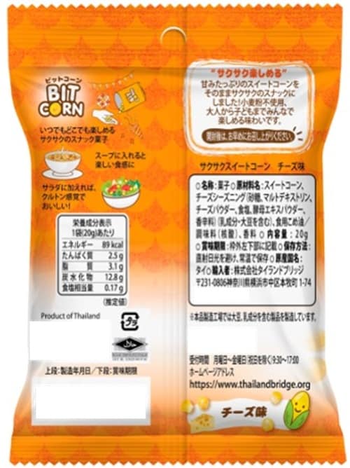 [2種計48袋]タイランドブリッジ サクサクスイートコーン チーズ味 20g / サクサクスイートコーン うすしお味 20g