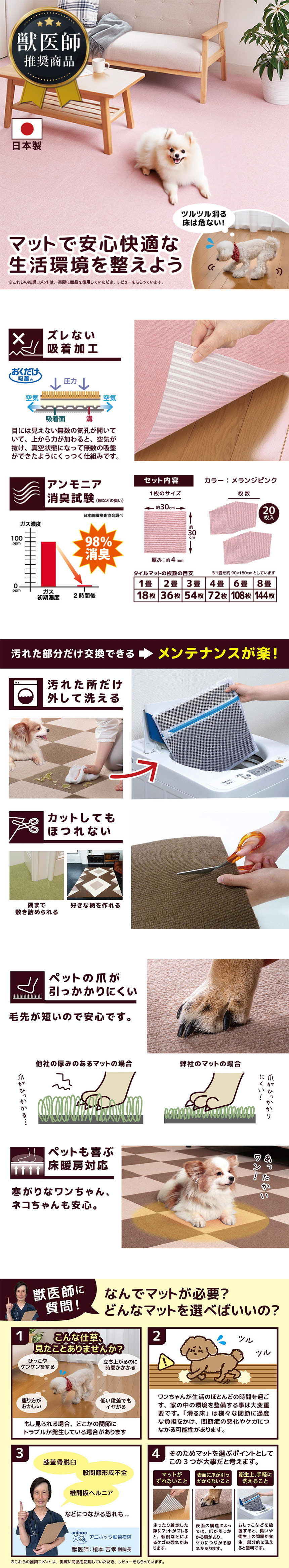 [1個]サンコー ペット用撥水タイルマット メランジピンク 20枚入 | 薄くて、ズレなく、つまずかない!