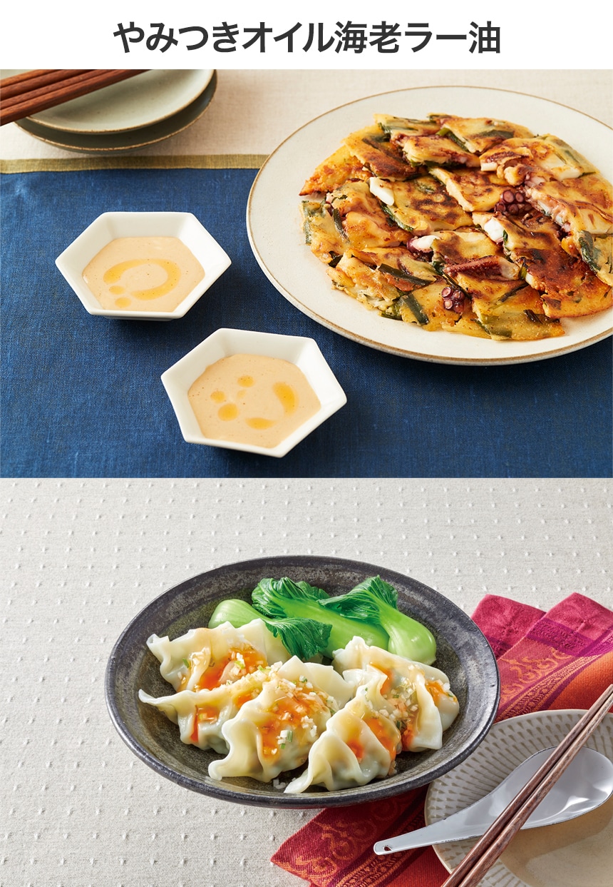 日清やみつきオイルは、いつもの料理を、かけるだけで簡単にみんなが大好きな「やみつき味」にしてしまう調味料です。
