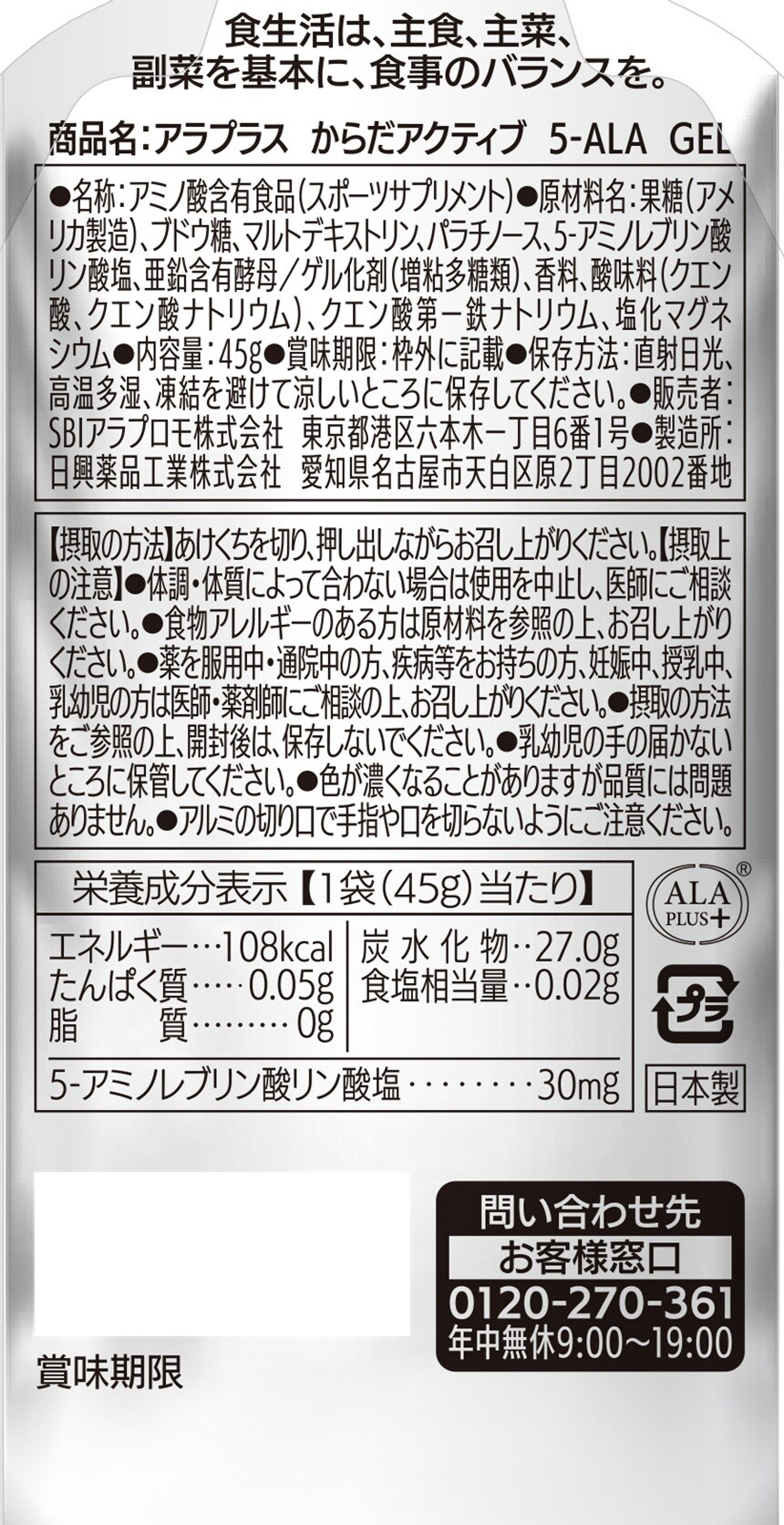・アラプラス からだアクティブ 5-ALA GEL 桜餅味 45g×20本 - 賞味期限