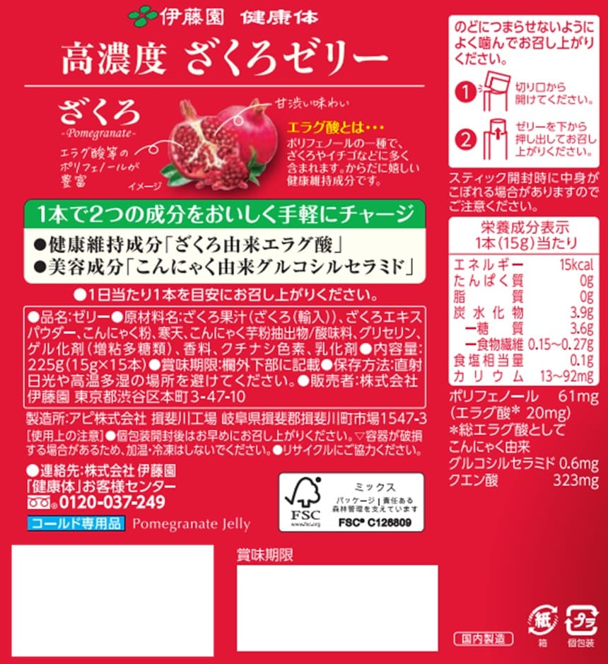 - 【賞味期限間近】健康体 高濃度ざくろゼリー 15g×15本入