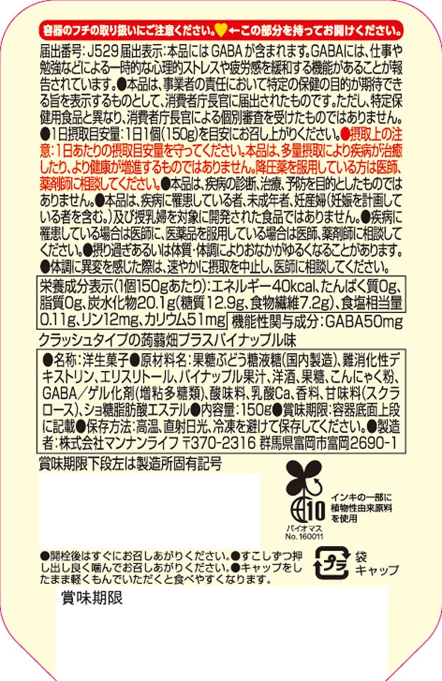 [60個]マンナンライフ クラッシュタイプの蒟蒻畑プラス パイナップル味 150g | ストレスや疲労感を低減する