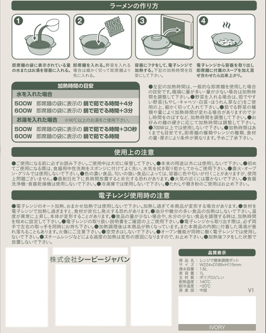 [5個]シービージャパン atomico レンジで簡単調理ポット アイボリー | 電子レンジで鍋料理や麺類も楽しめる、1人前分調理可能。