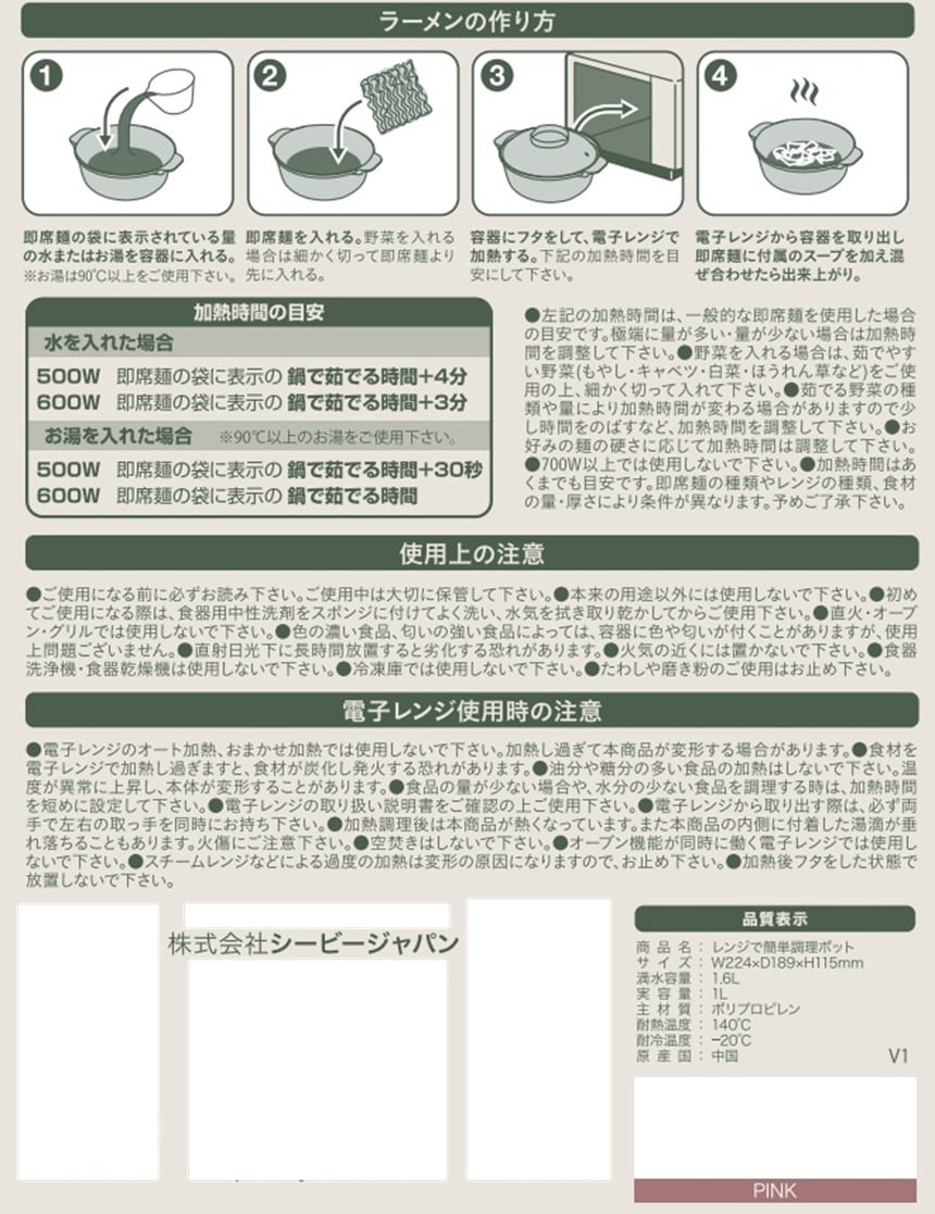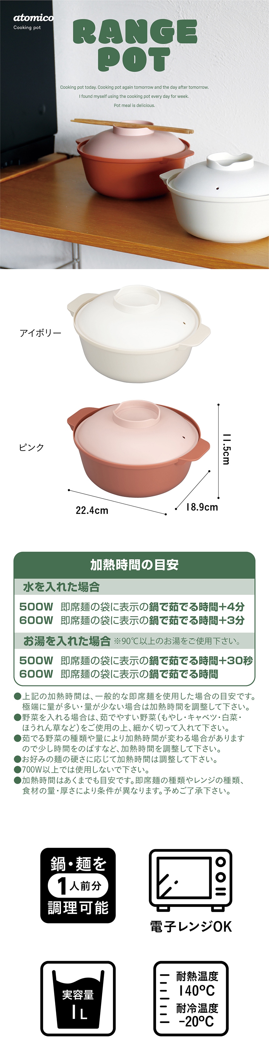 [5個]シービージャパン atomico レンジで簡単調理ポット ピンク | 電子レンジで鍋料理や麺類も楽しめる、1人前分調理可能。