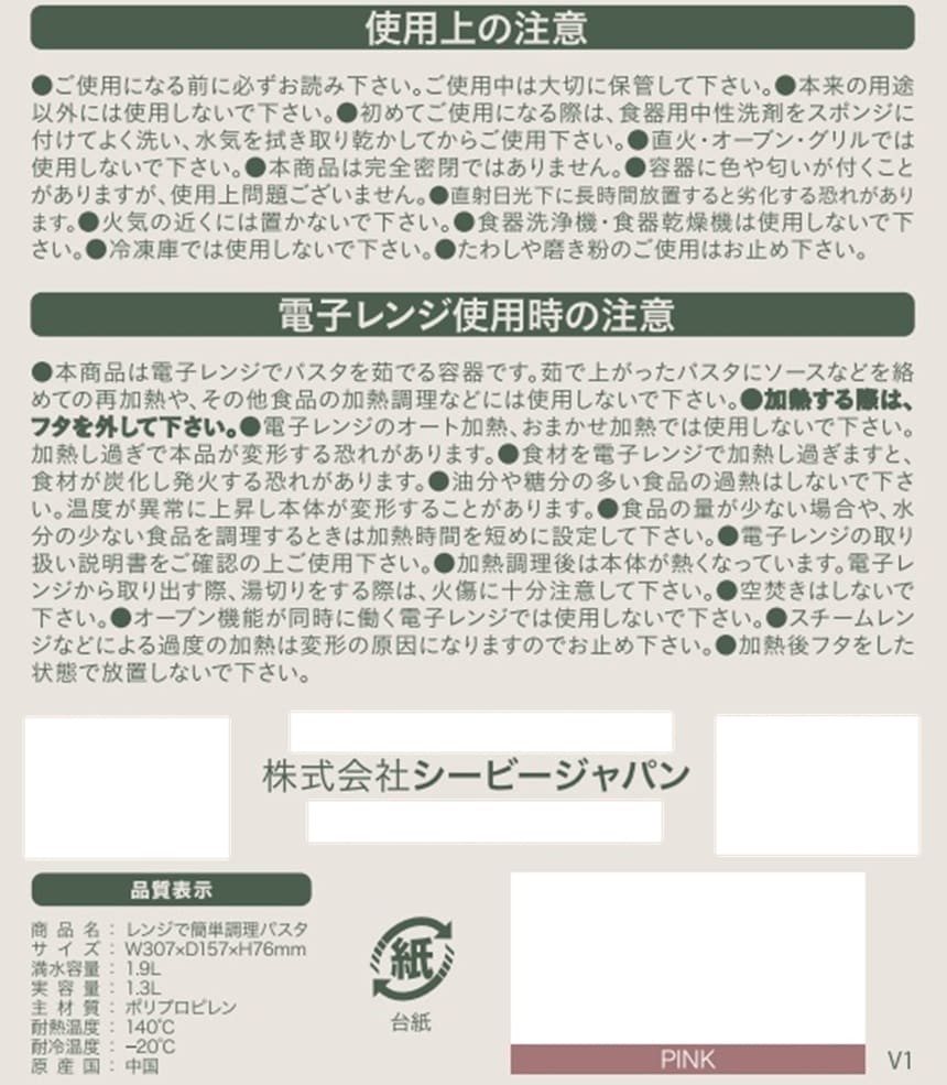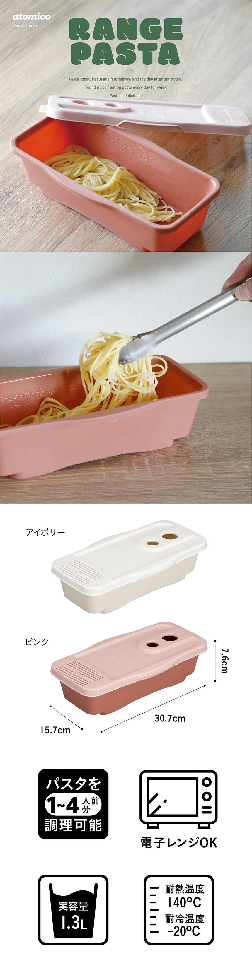 - atomico レンジで簡単調理パスタ ピンク