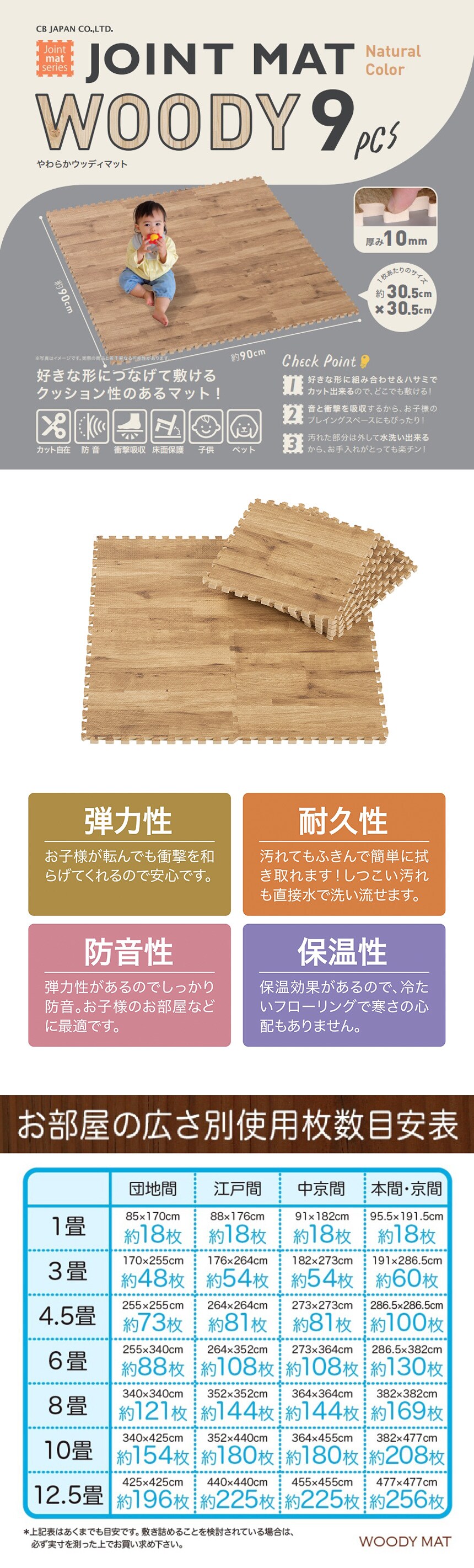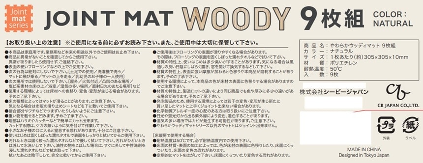 [3個]シービージャパン やわらかウッディマット 9枚組 ナチュラル | 敷くだけで簡単にフローリング仕様に。