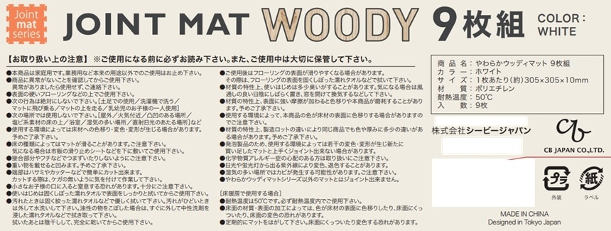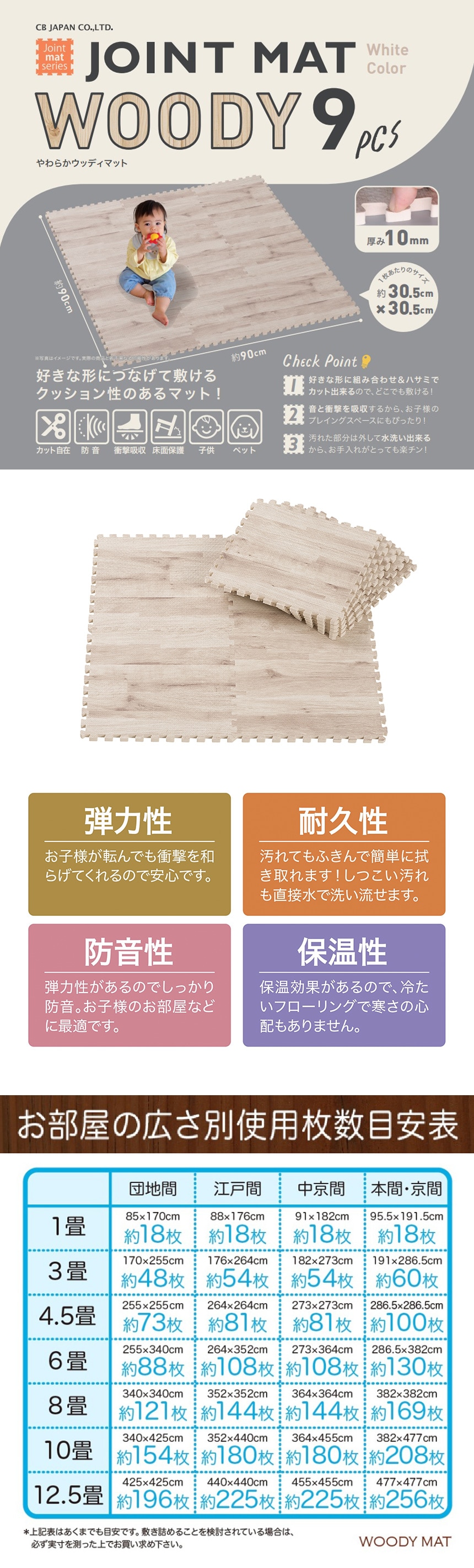 [3個]シービージャパン やわらかウッディマット 9枚組 ホワイト | 敷くだけで簡単にフローリング仕様に。