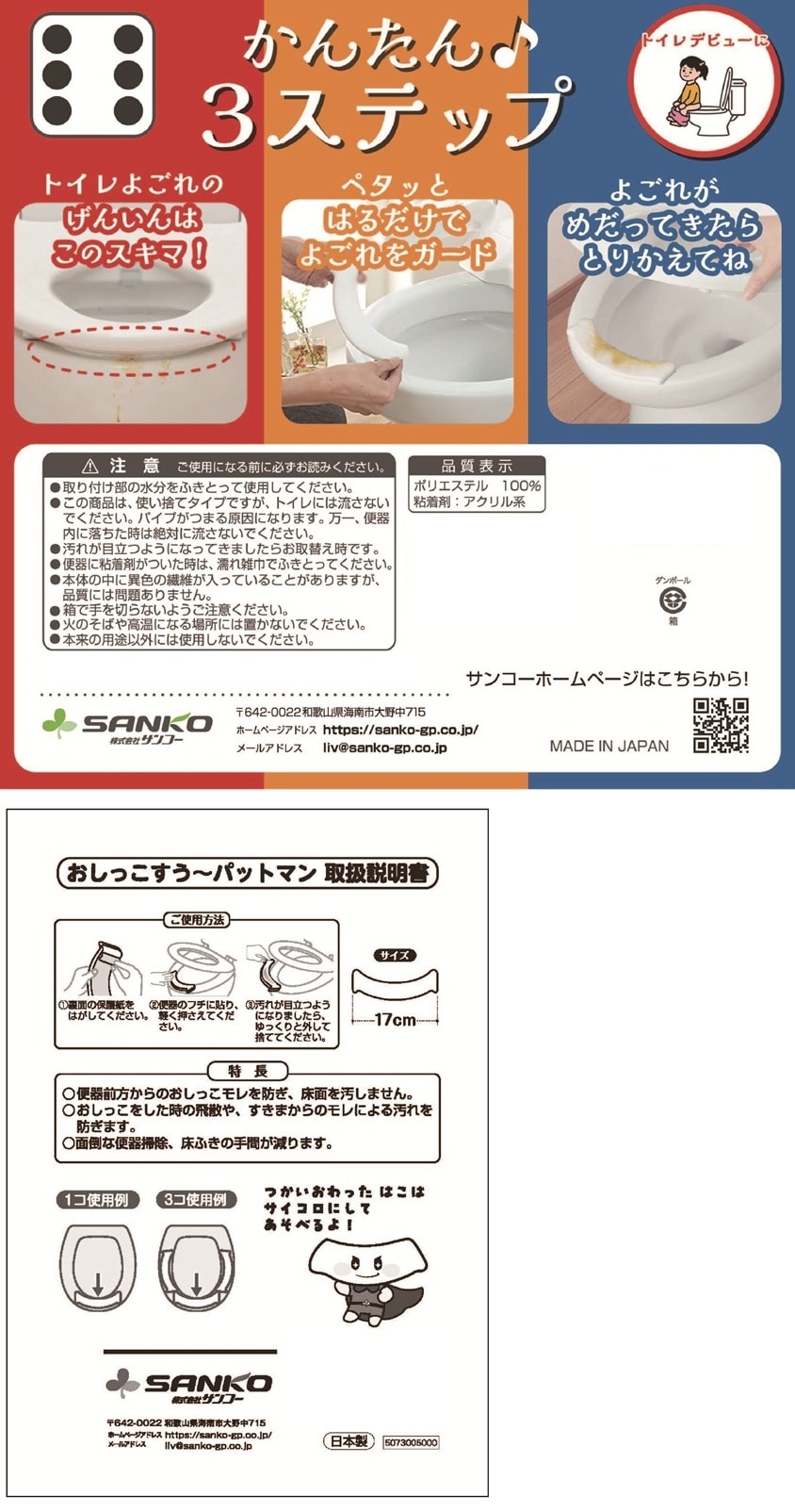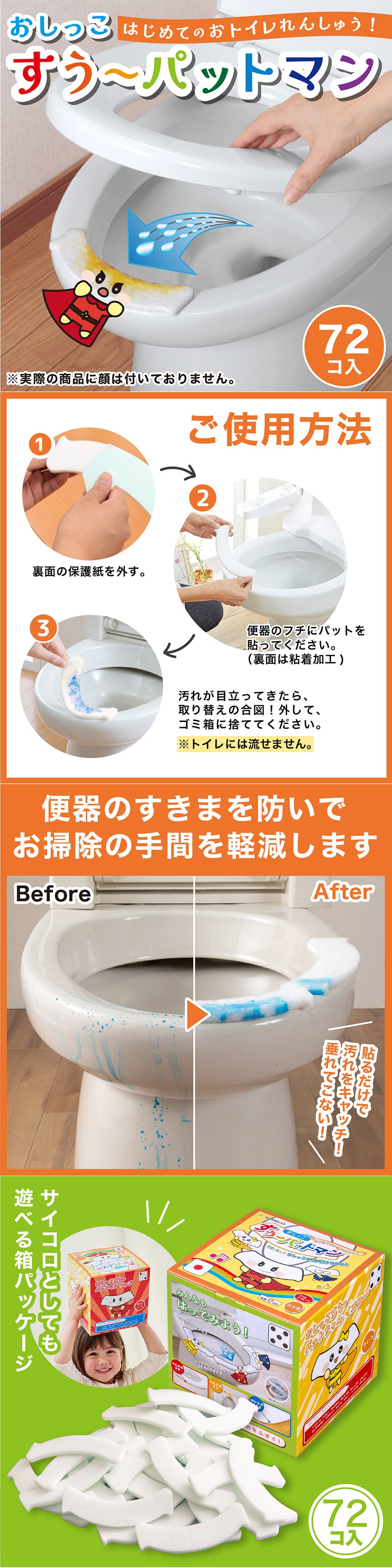 [1個]サンコー おしっこすう~パットマン 72個入 | 便器前方からのおしっこモレを防ぎ、床面を汚しません。