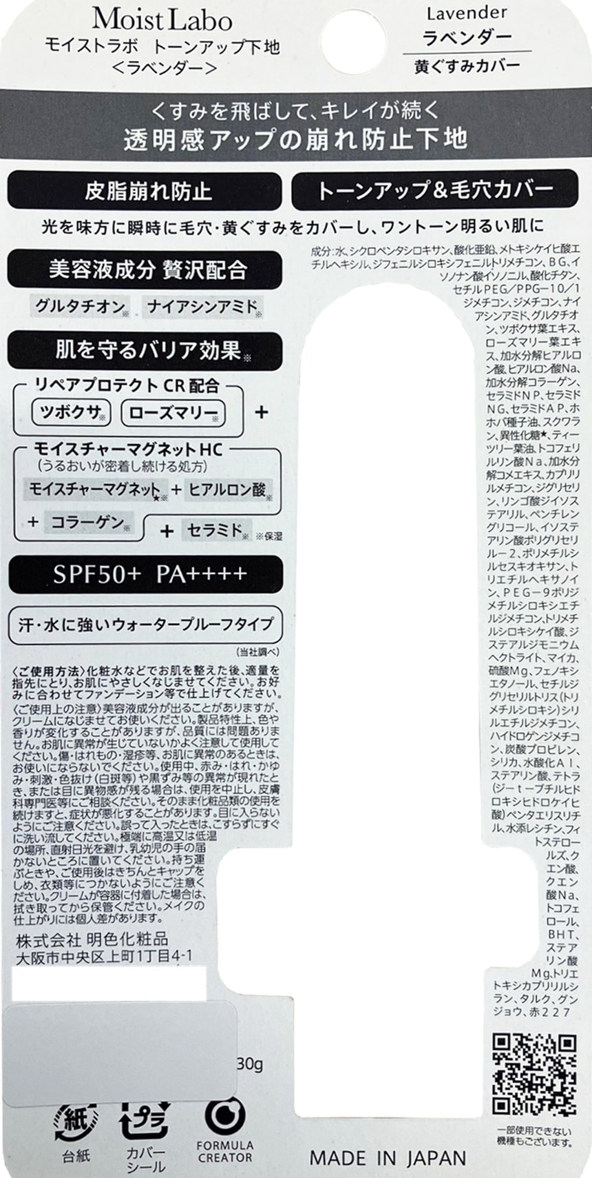[4個]明色化粧品 モイストラボ トーンアップ下地 ラベンダー 30g | くすみを飛ばしてキレイが続く、透明感をアップする崩れ防止下地。