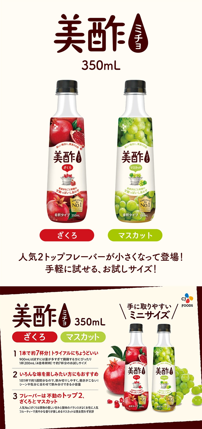 [40本]CJ FOODS JAPAN 美酢 ざくろ 350ml | 美酢が小さくなって新登場!お試しサイズの350mLで、約7杯分(4倍希釈時)お飲みいただけます。