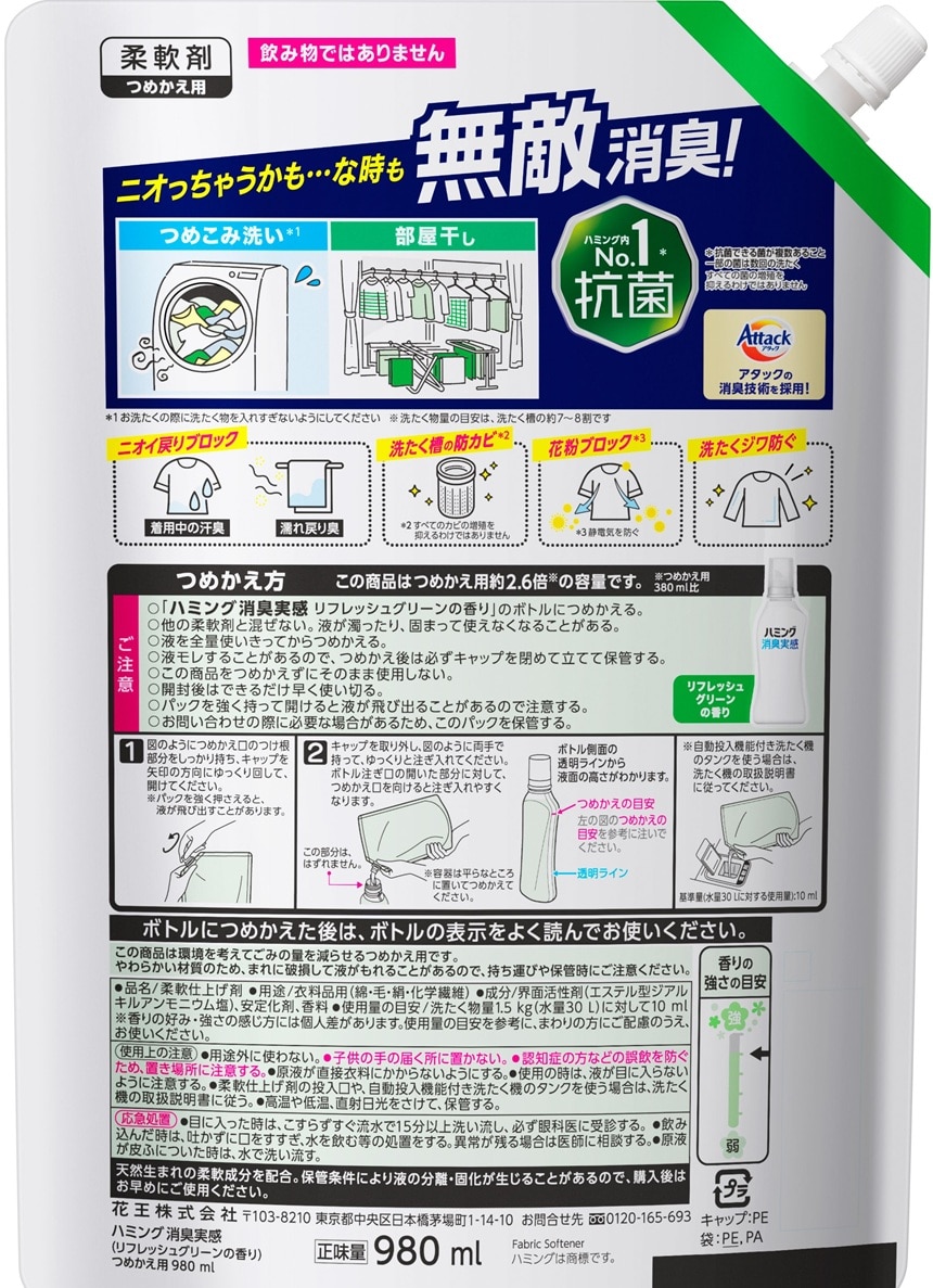 - ・ハミング消臭実感 リフレッシュグリーンの香り つめかえ用 980ml×6個