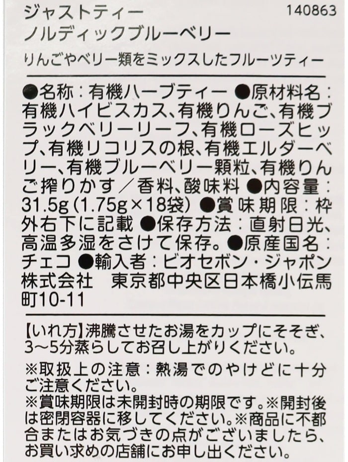 - ・ジャストティー ノルディックブルーベリー 31.5g(1.75g×18袋)×12個