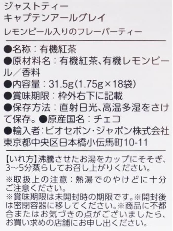・ジャストティー キャプテンアールグレイ 31.5g(1.75g×18袋)×6個 - 賞味期限