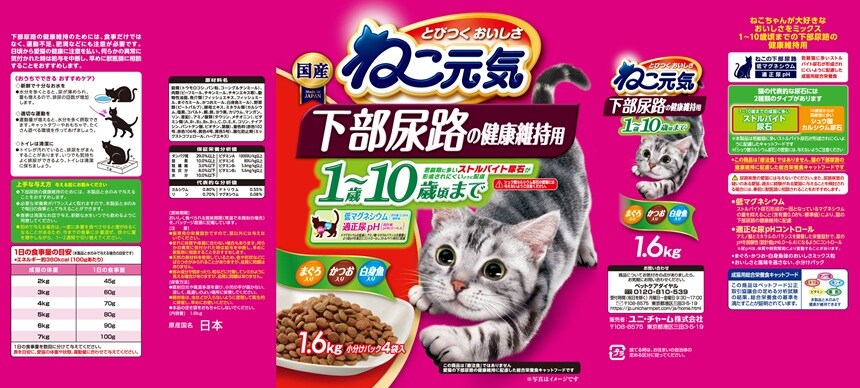 [2個]ユニ・チャーム ねこ元気 下部尿路の健康維持用 1歳~10歳頃まで まぐろ・かつお・白身魚入り 1.6kg | とびつく おいしさ!