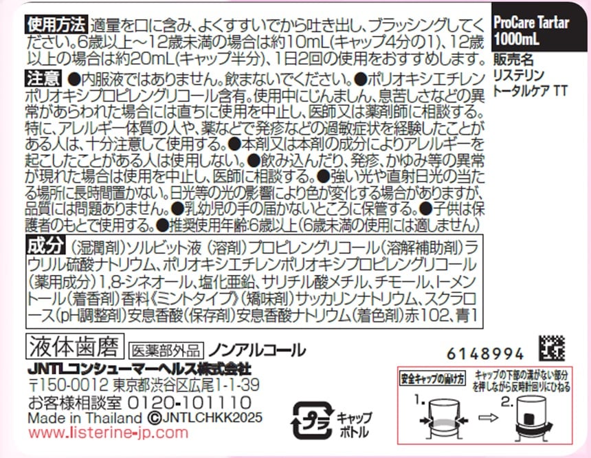 [6個]【医薬部外品】JNTLコンシューマーヘルス 薬用リステリン プロケア 歯石・歯垢ケア 1000ml | 歯科での処置が必要な「歯石」、トラブルのもととなる「歯垢」をおうちで予防ケア