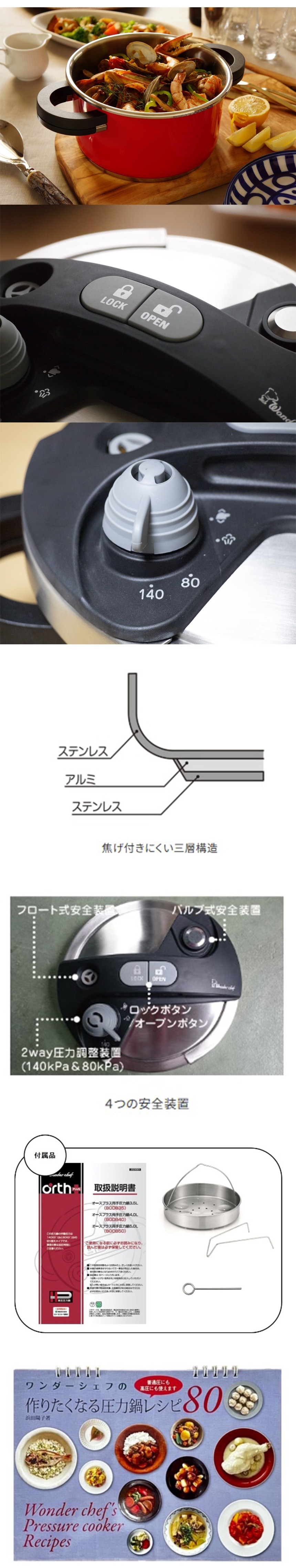 [1個]ワンダーシェフ オースプラス両手圧力鍋 レッド 3.5L | 「超高圧」と「高圧」の切り替え式で、もっと省エネ&時短!