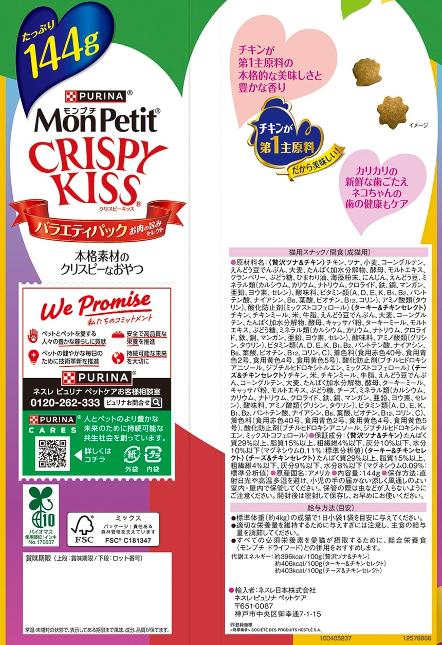 [4個]ネスレ日本 モンプチ クリスピーキッス バラエティパック お肉の旨みセレクト 144g | お肉が第1主原料のクリスピーなおやつ