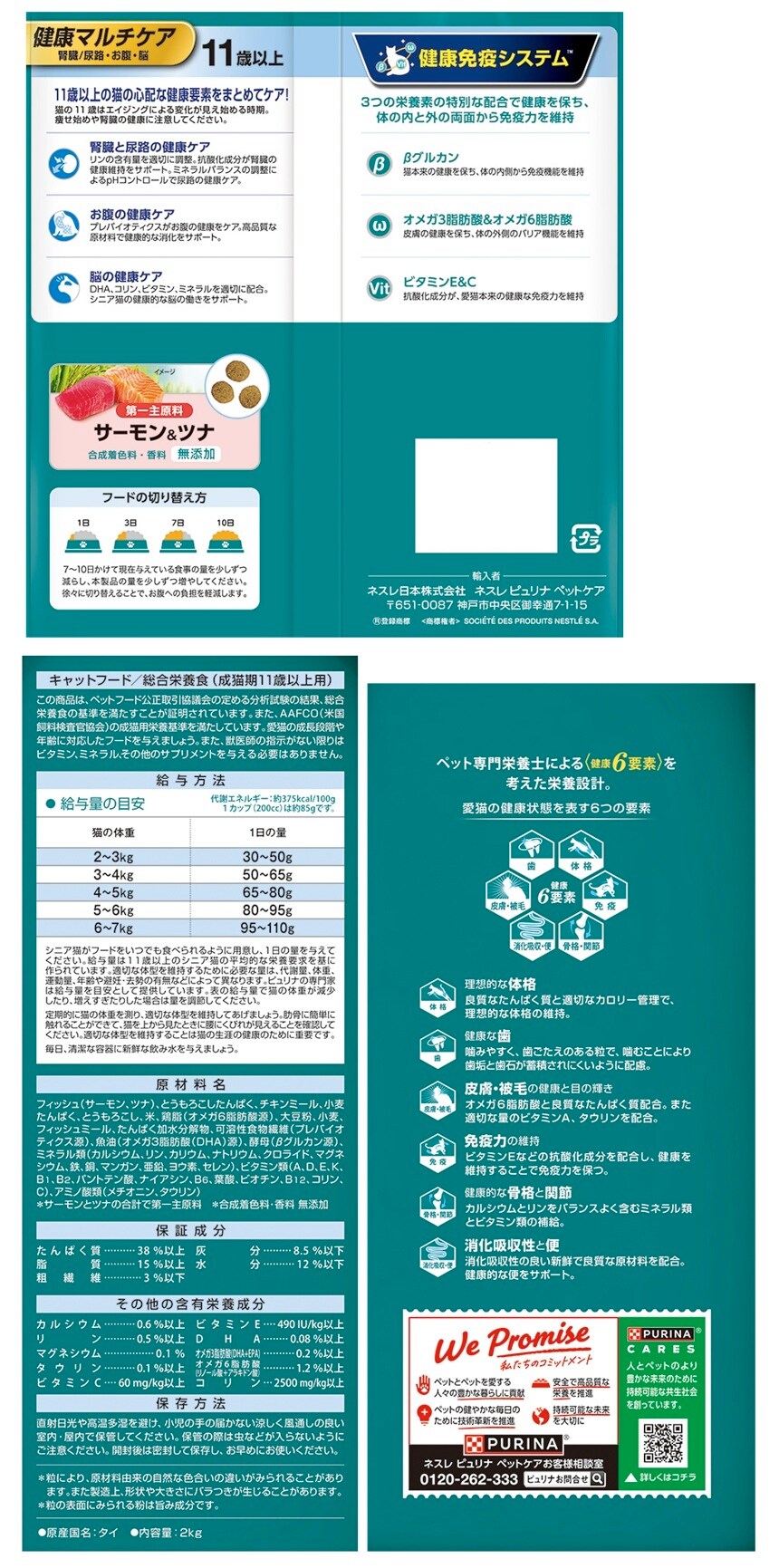 - ピュリナワンキャット 健康マルチケア 11歳以上 サーモン&ツナ 2kg
