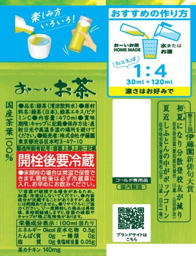 [24本]伊藤園 お~いお茶 HOME MADE 緑茶 PET (希釈タイプ) 470ml | 水やお湯に混ぜるだけ、簡単おいしい「お~いお茶」