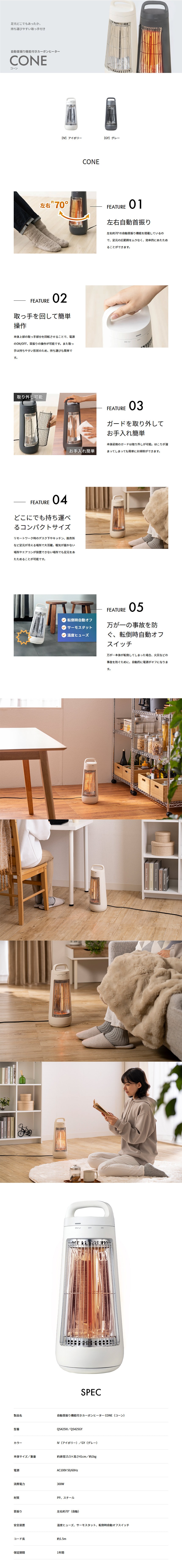 - [アイボリー] QUADS(クワッズ)/自動首振り機能付き カーボンヒーター「コーン」/QS425IV