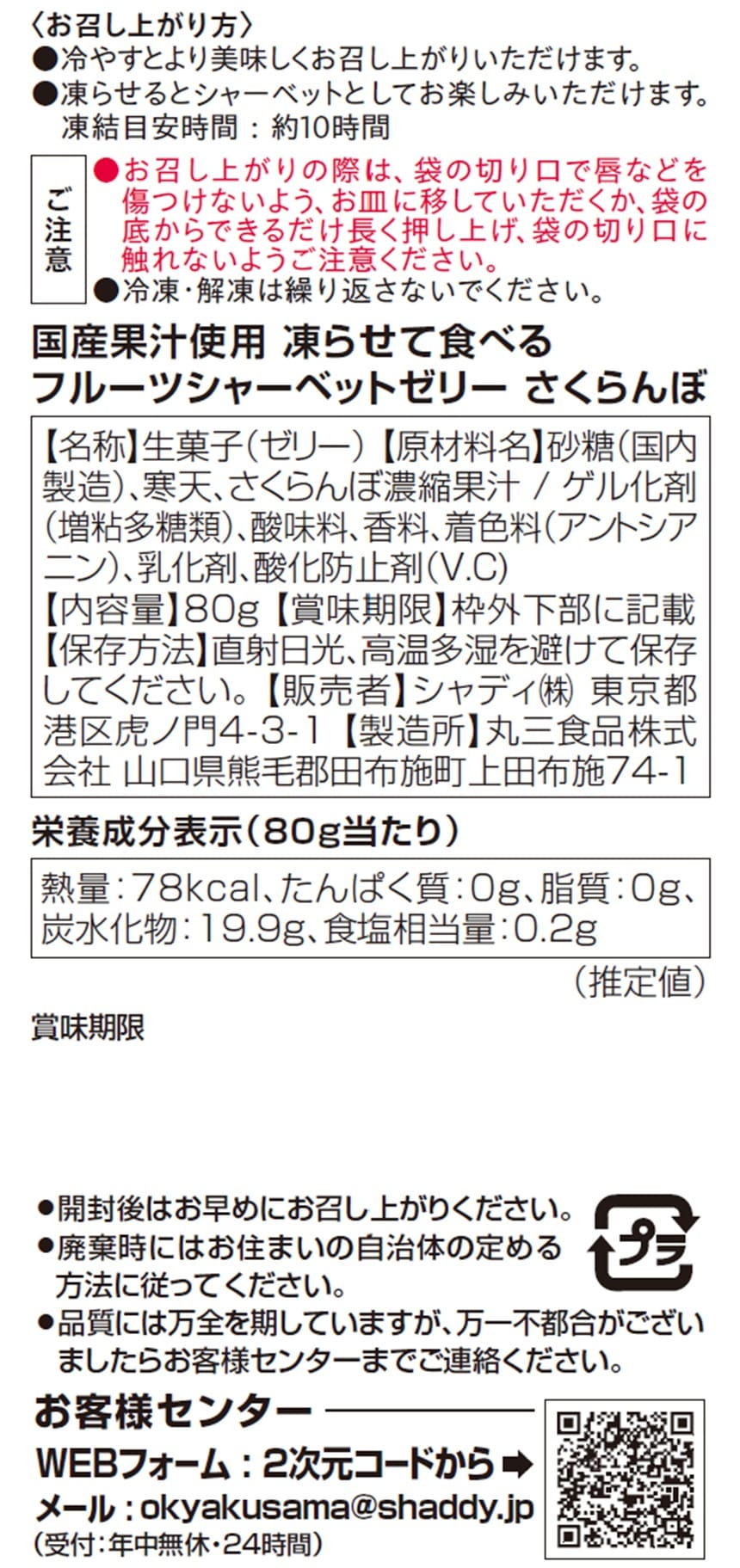 - ・凍らせて食べるフルーツシャーベットゼリー さくらんぼ 80g×50本