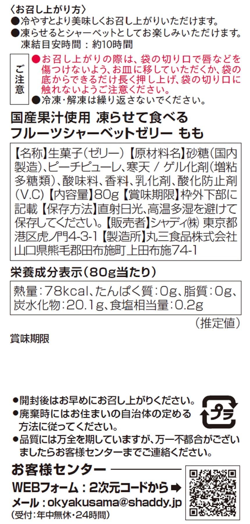 ・凍らせて食べるフルーツシャーベットゼリー もも 80g×50本 - 賞味期限