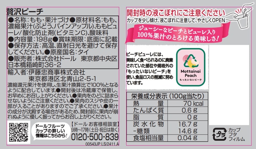 液部に使われているピーチピューレには、美味しく食べられるのに加工の工程で規格外となった「もったいないピーチ」を使用。