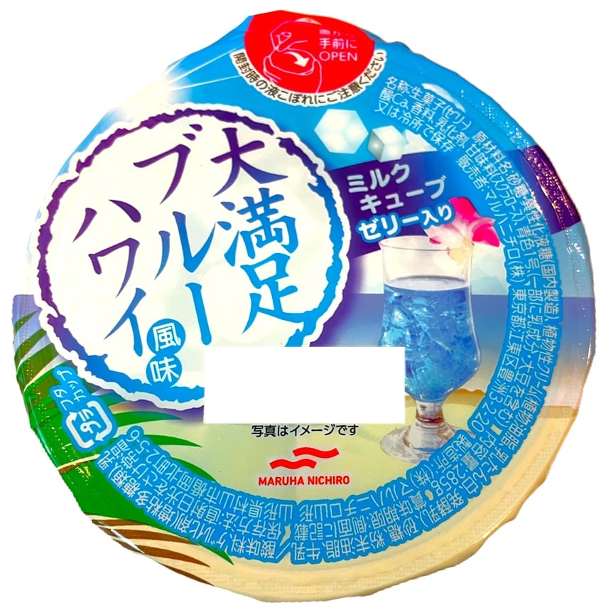 ブルーハワイ風味の鮮やかなゼリーの上にミルク風味のゼリーを浮かべ、見た目も楽しく仕上げました。