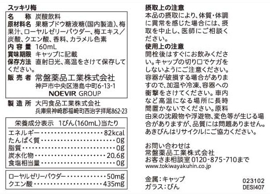 [10本]常盤薬品工業 スッキリ梅 160mL | ごくごく飲める梅炭酸ドリンク
