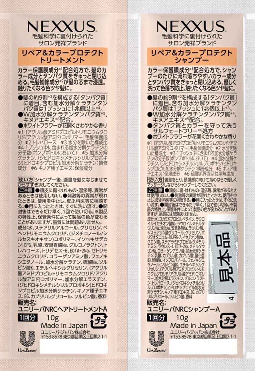 [100セット]ユニリーバ・ジャパン ネクサス リペア&カラープロテクト シャンプー&トリートメント サシェ<試供品> | 長く続く色ツヤ髪へ カラーケア
