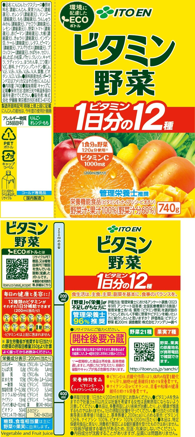 [30本]伊藤園 ビタミン野菜 740g | 1食分の野菜120gと1日分のビタミン12種がきっちり摂れる