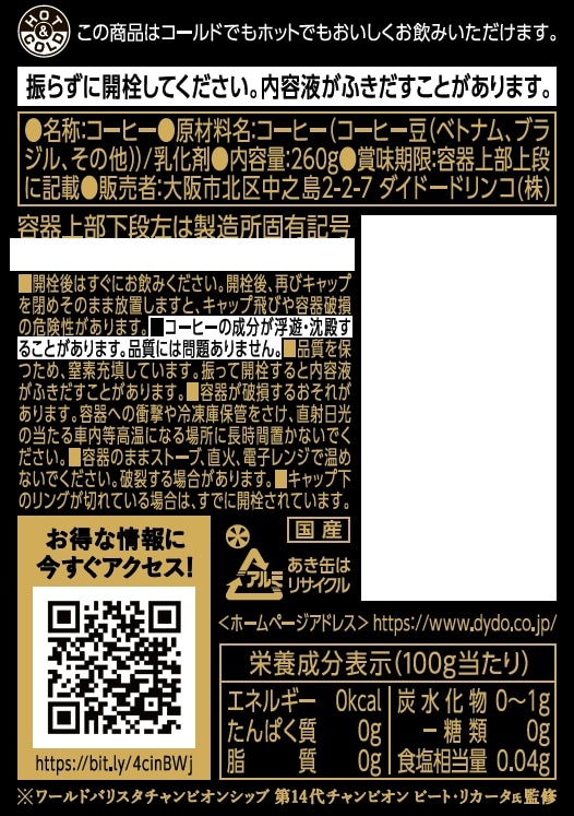 - ダイドーブレンドブラック コーヒーラボ 世界一のバリスタ監修 260g