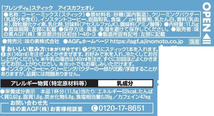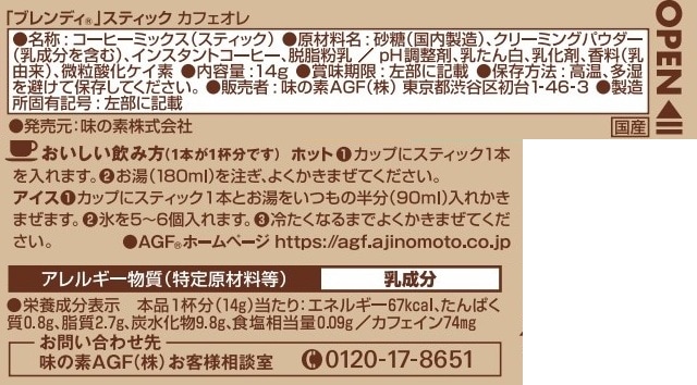 「ブレンディⓇ」スティック カフェオレ 14g×6本