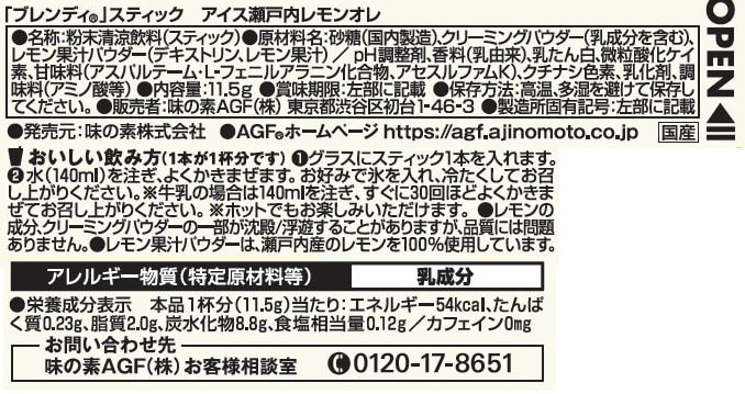 「ブレンディⓇ」スティック アイス瀬戸内レモンオレ 11.5g×4本