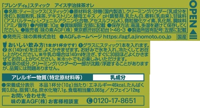 「ブレンディⓇ」スティック アイス宇治抹茶オレ 10g×4本