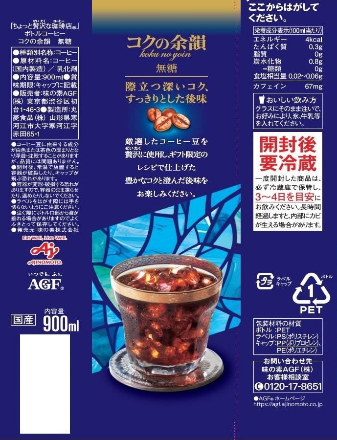 ・「ちょっと贅沢な珈琲店」ボトルコーヒー コクの余韻 無糖 900ml×5本