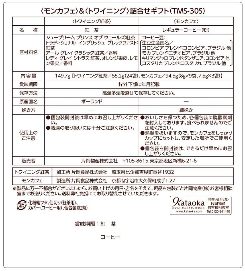 [3箱]片岡物産 モンカフェ&トワイニング 詰合せ TMS-30S