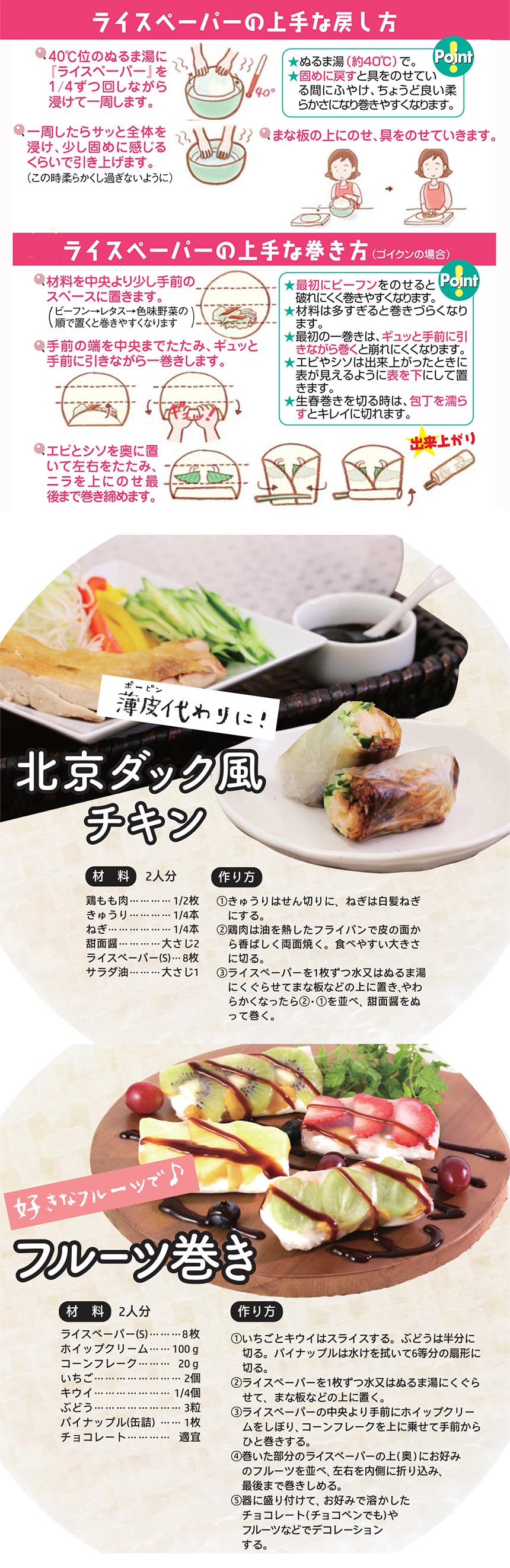 水でさっと戻せる生春巻き用の皮。具を巻いてお召し上がりください。直径約15.5cm。約40枚入
