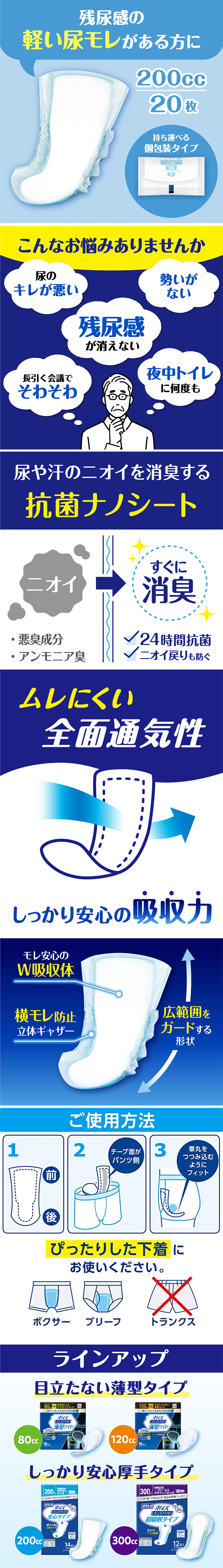 ●気になる尿や汗のニオイを消臭、さらにニオイの原因となる細菌の増殖を抑制する抗菌(※1)ナノシート。