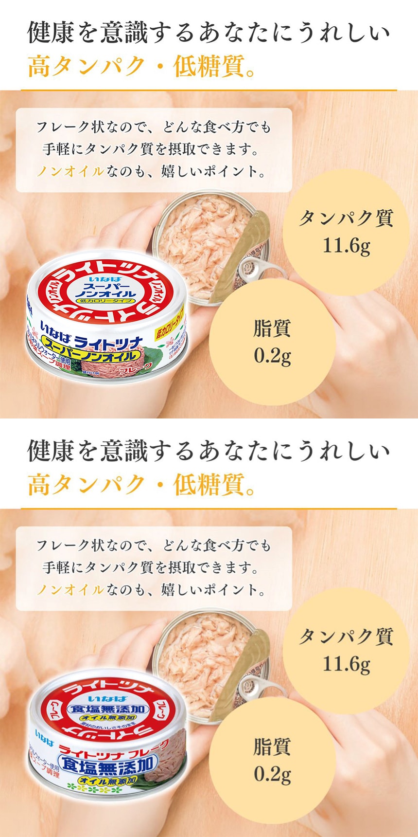 [2種計48缶]いなば食品 ライトツナ 2種( スーパーノンオイル / 食塩無添加 オイル無添加 )