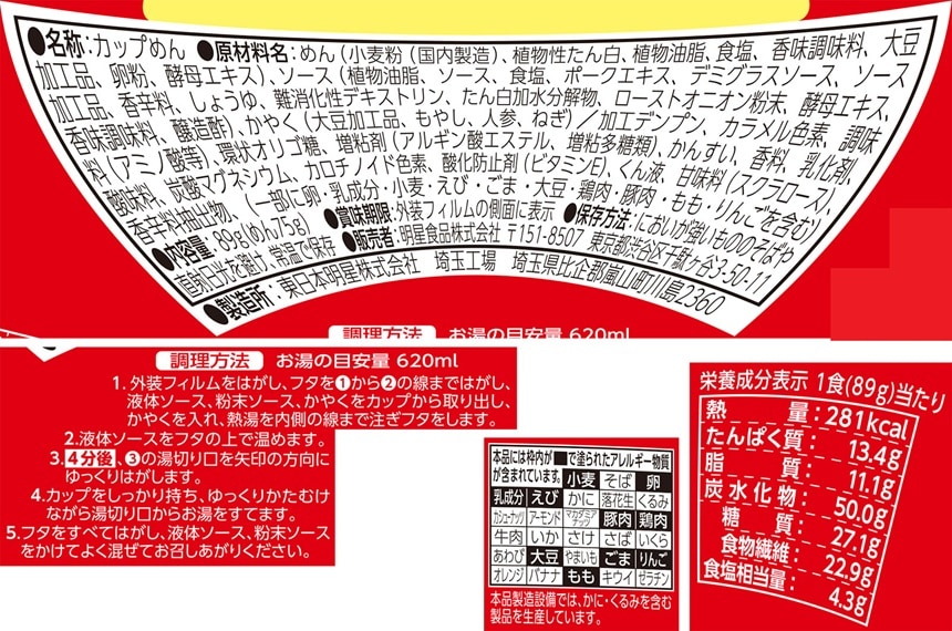 (※)日本食品標準成分表2020年版(八訂)より、中華スタイル即席カップめん油揚げ焼きそば乾(添付調味料等を含むもの)(100g当たり)と比較