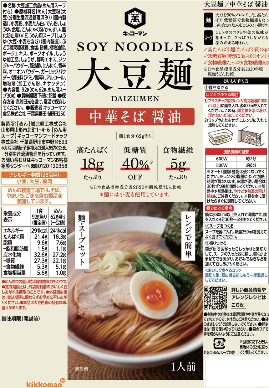 [36個]キッコーマン食品 大豆麺 中華そば 醤油 92g | 大豆を50%ブレンドした低糖質・高たんぱくでのどごしのよい麺です。