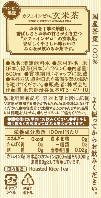 こだわりの国産米を、伊藤園独自の製法で丁寧に焙煎と抽出を行い、カフェイン取り除いた緑茶原料をブレンドしています。