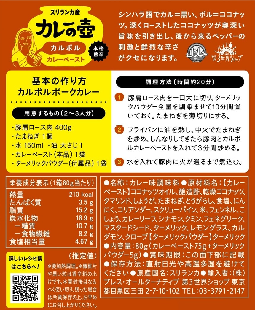 [2種計20個]プレス・オール カレーの壺 本格旨辛 カルポルカレーペースト / ジャフナカレーペースト | スリランカ現地のスパイスカレーが再現できる、カレーペースト2種