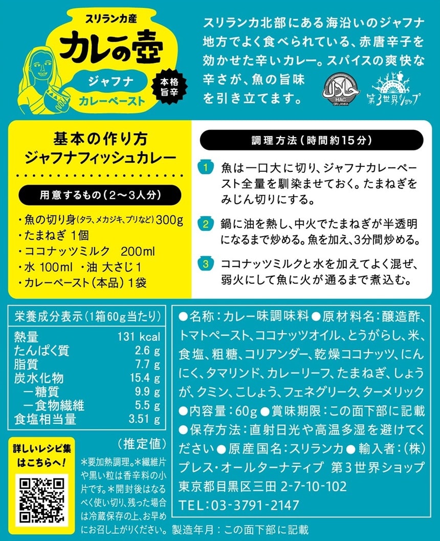 ・カレーの壺 ジャフナカレーペースト 60g×10個 - 賞味期限