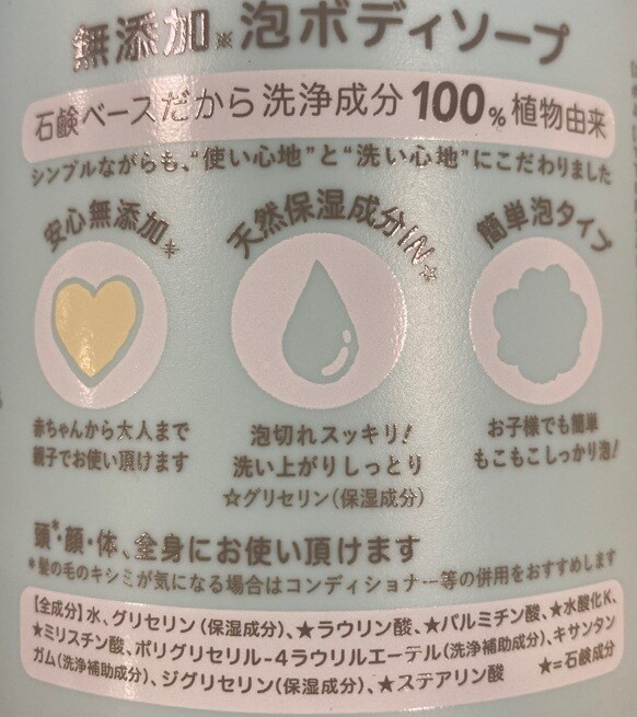 ●赤ちゃんから大人まで親子で使える泡タイプのボディソープです。<無添加>