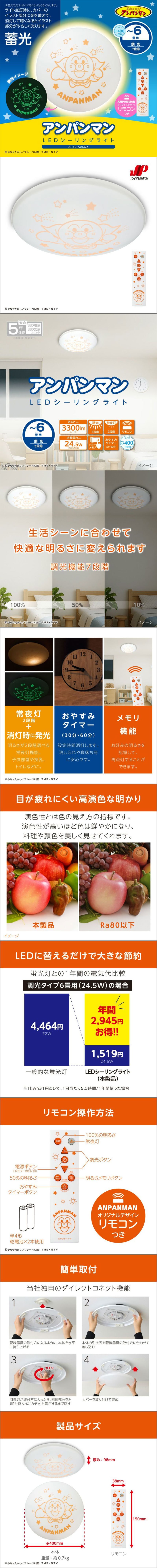 - 【~6畳/調光7段階】ドウシシャ/アンパンマン LEDシーリングライト(オリジナルデザインリモコン付き)/AP40-A06DX