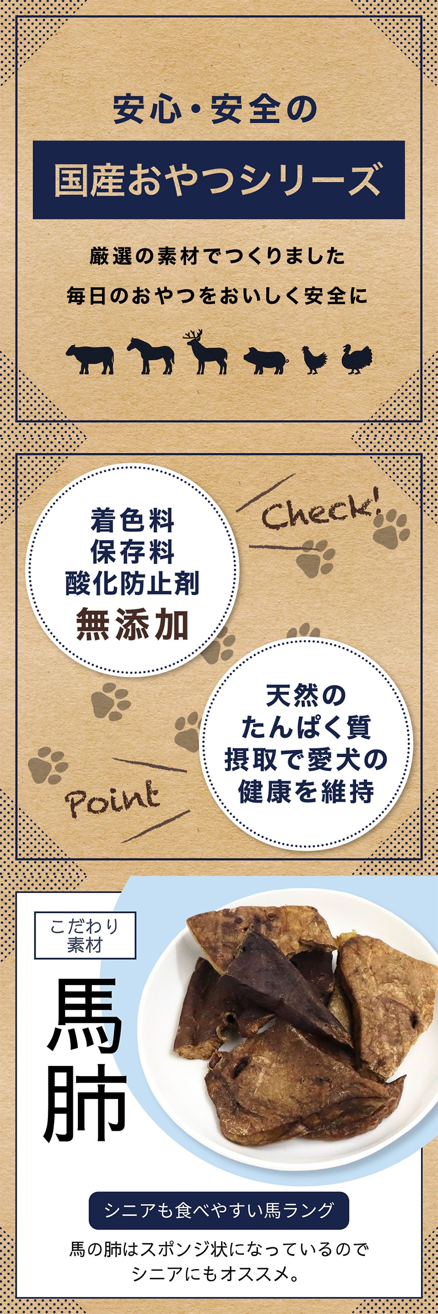 馬の肺はスポンジ状になっているのでシニアにもオススメ。アレルギーの子にも配慮。